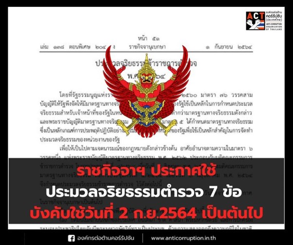 แนวทางการปฏิบัติตนของข้าราชการตำรวจตามประมวลจริยธรรมข้าราชการตำรวจ 2565